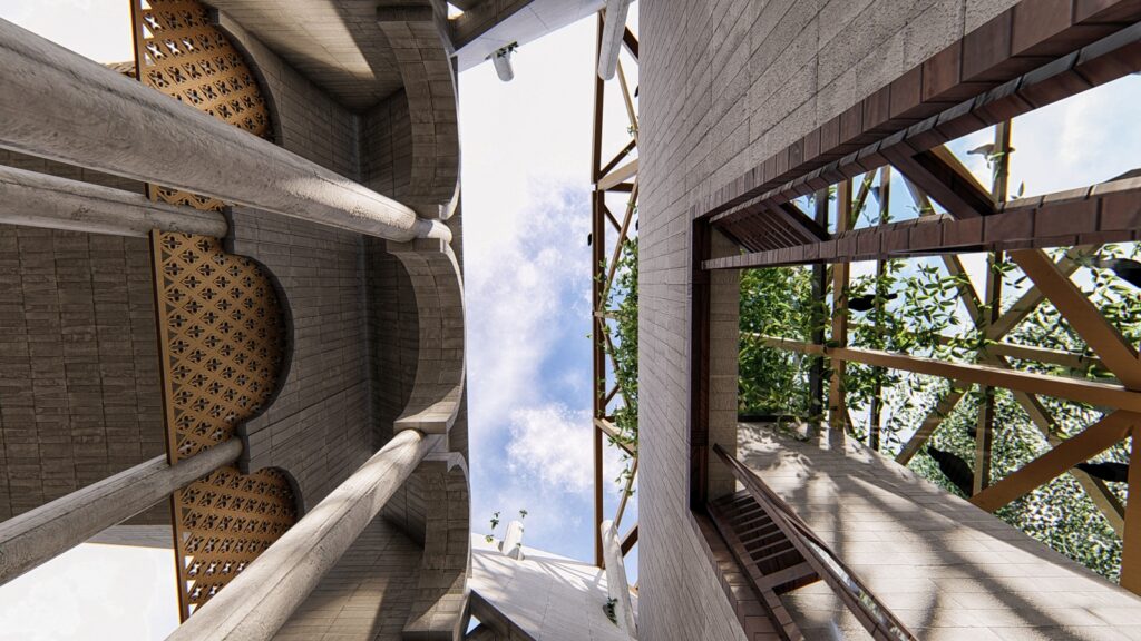 The 3D exterior design of the main gate of Pabna University of Science and Technology embodies the concept of freedom and openness, inspired by the idea of being as free as a bird. The design features a sleek and modern aesthetic, with clean lines and a minimalist approach that evokes a sense of liberation and unrestricted movement. The gate’s structure is composed of a series of curved and angular elements that seem to soar upwards, much like a bird in flight, creating a sense of dynamism and energy.
